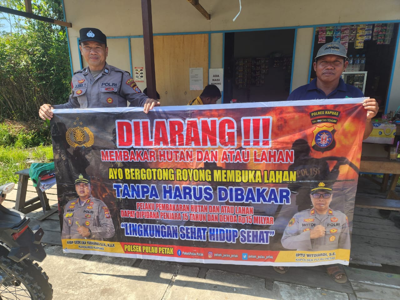 DALAM UPAYA PENCEGAHAN KEBARAN HUTAN DAN LAHAN, PERSONEL POLSEK PULAU PETAK SOSIALISASIKAN SANKSI PIDANA PELAKU KARHUTLA KE MASYARAKAT KECAMATAN PULAU PETAK