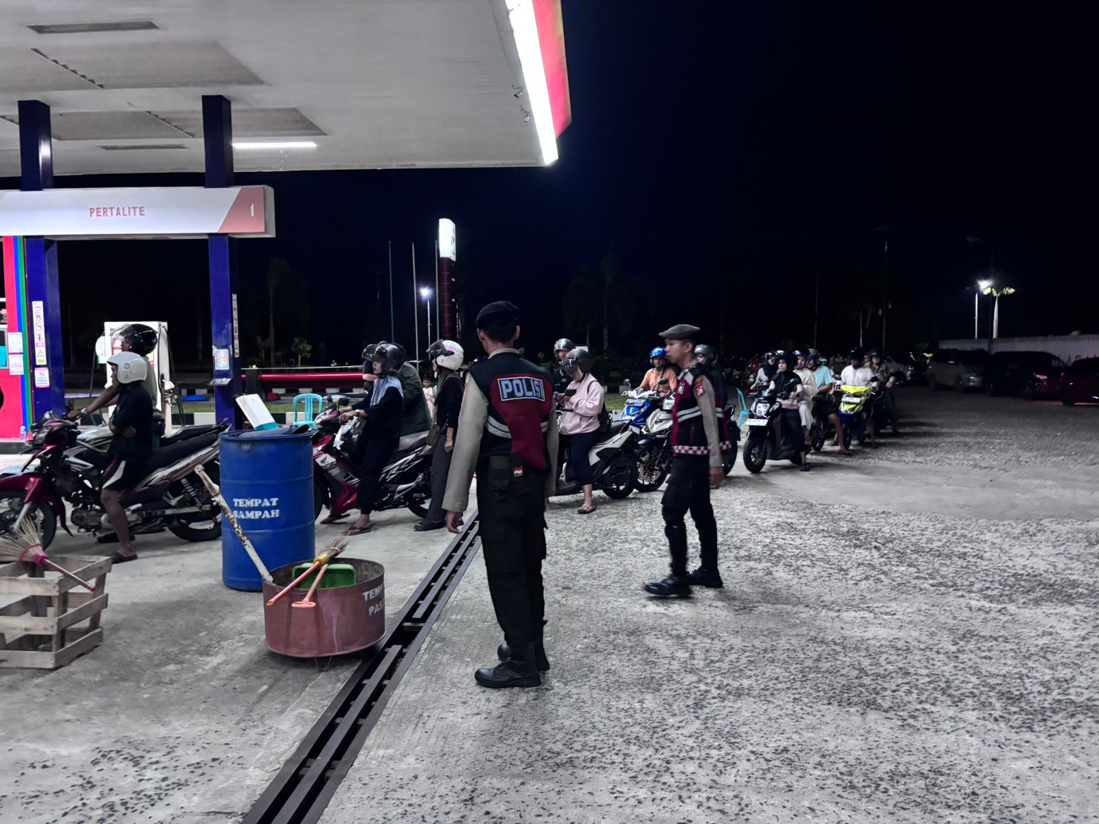Sukamara – Personel Sat Samapta Polres Sukamara melaksanakan kegiatan Patroli Harkamtibmas dan pencegahan aksi premanisme di area SPBU Sukamara, Jalan Tjilik Riwut. Kegiatan ini bertujuan untuk memastikan situasi tetap aman dan kondusif, serta memberikan rasa nyaman kepada masyarakat yang beraktivitas di sekitar lokasi. Patroli dilaksanakan pada Selasa (07/10/2025) malam.