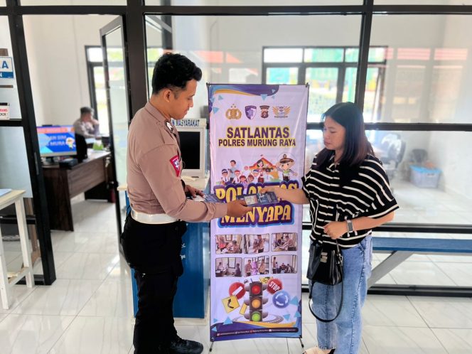 Puruk Cahu – Dalam rangka meningkatkan kualitas pelayanan publik dan mempererat kedekatan dengan masyarakat, personel Satuan Lalu Lintas (Satlantas) Polres Murung Raya (Mura) melaksanakan program “Polantas Menyapa, Hadir dan Melayani Masyarakat” di Satpas SIM Polres Mura, Selasa (14/10/2025).