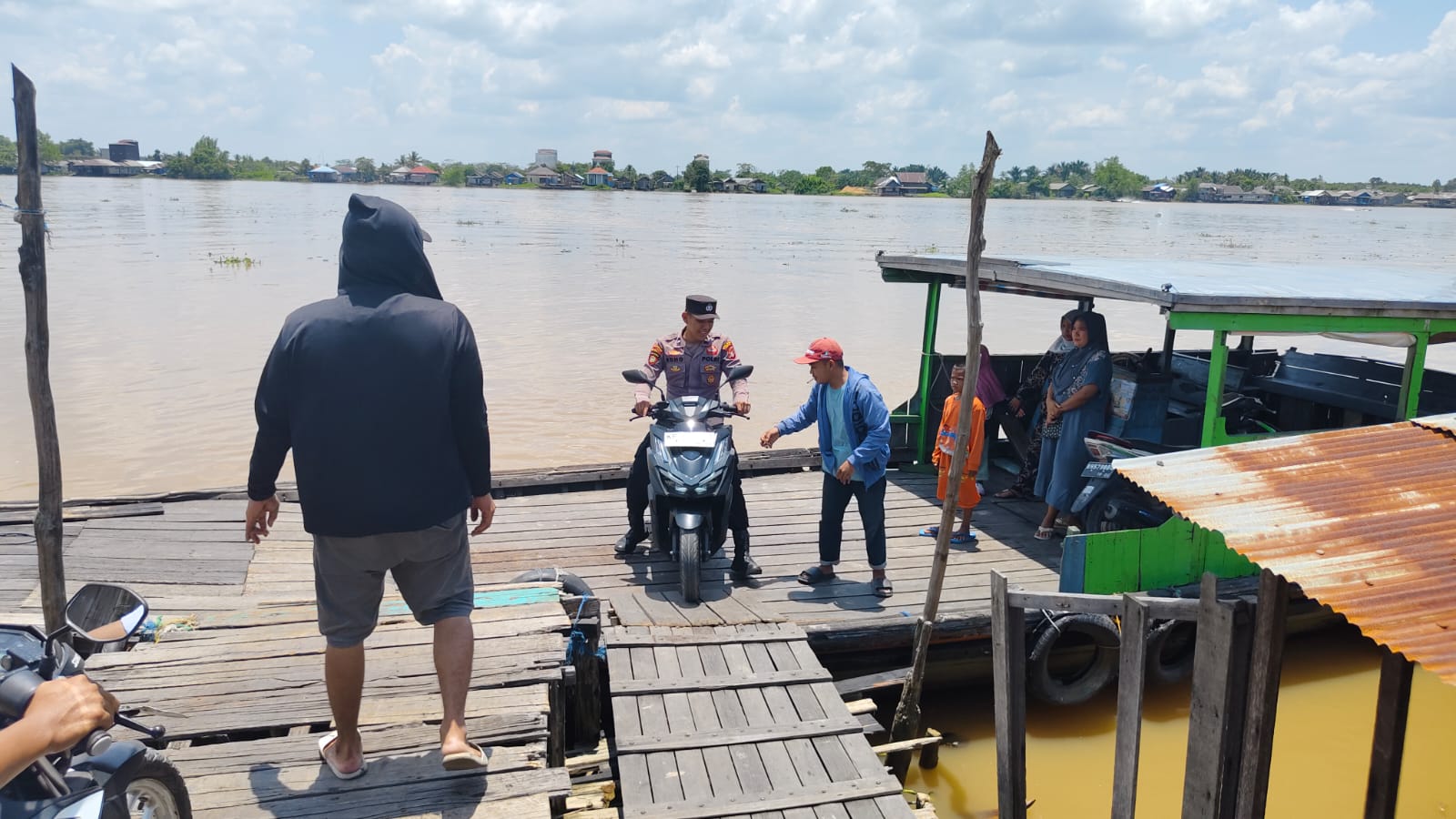 Personel Polsek Kapuas Murung Laksanakan Giat Rutin Cek Situasi Pelabuhan Fery Penyebrangan Di Kelurahan Palingkau Baru