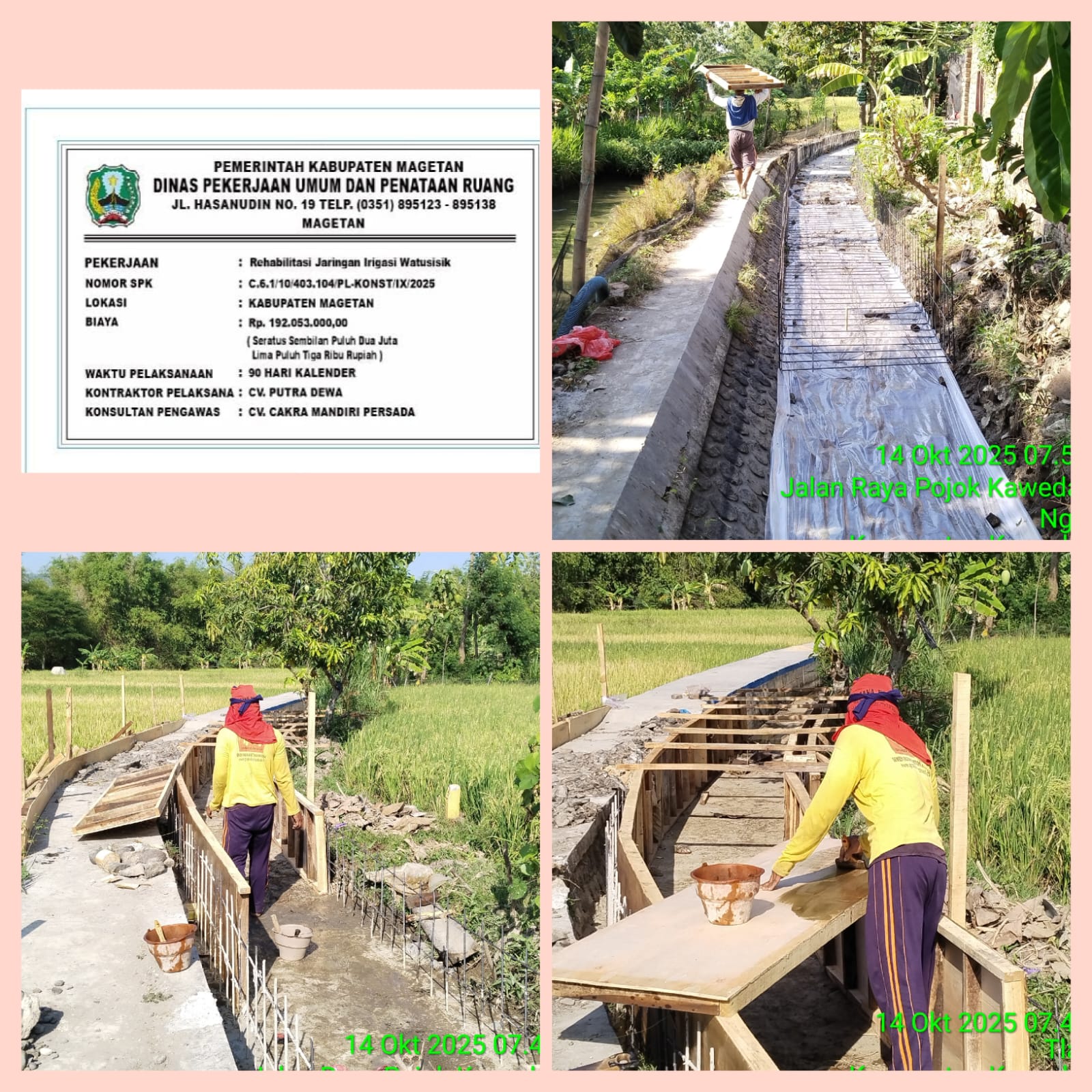 “Rehabilitasi jaringan irigasi Watusisik kami laksanakan untuk memperlancar distribusi air ke lahan pertanian warga. Dengan perbaikan ini, kami harap hasil panen masyarakat meningkat dan kebutuhan air pertanian dapat terpenuhi secara optimal,” ujar Yuli K. Iswahyudi, S.T., M.T.
