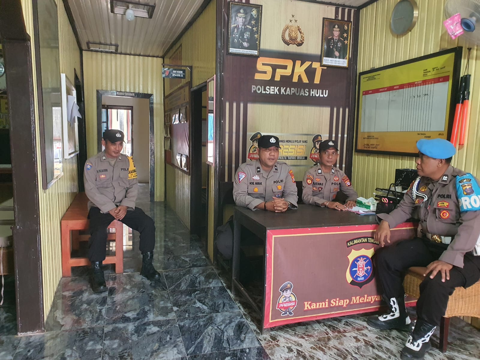 Tribratanews.kalteng.polri.go.id-Kapuas Hulu-Dalam rangka menanam kedisiplinan personel dan memberikan pelayanan yang optimal kepada masyarakat serta pengamanan mapolsek Kapuas Hulu Polres Kapuas, personel jaga melaksanakan serah terima tugas penjagaan secara rutin di ruangan penjagaan mapolsek Kapuas Hulu, Sabtu (18/10/2025) pukul 08.00 Wib.