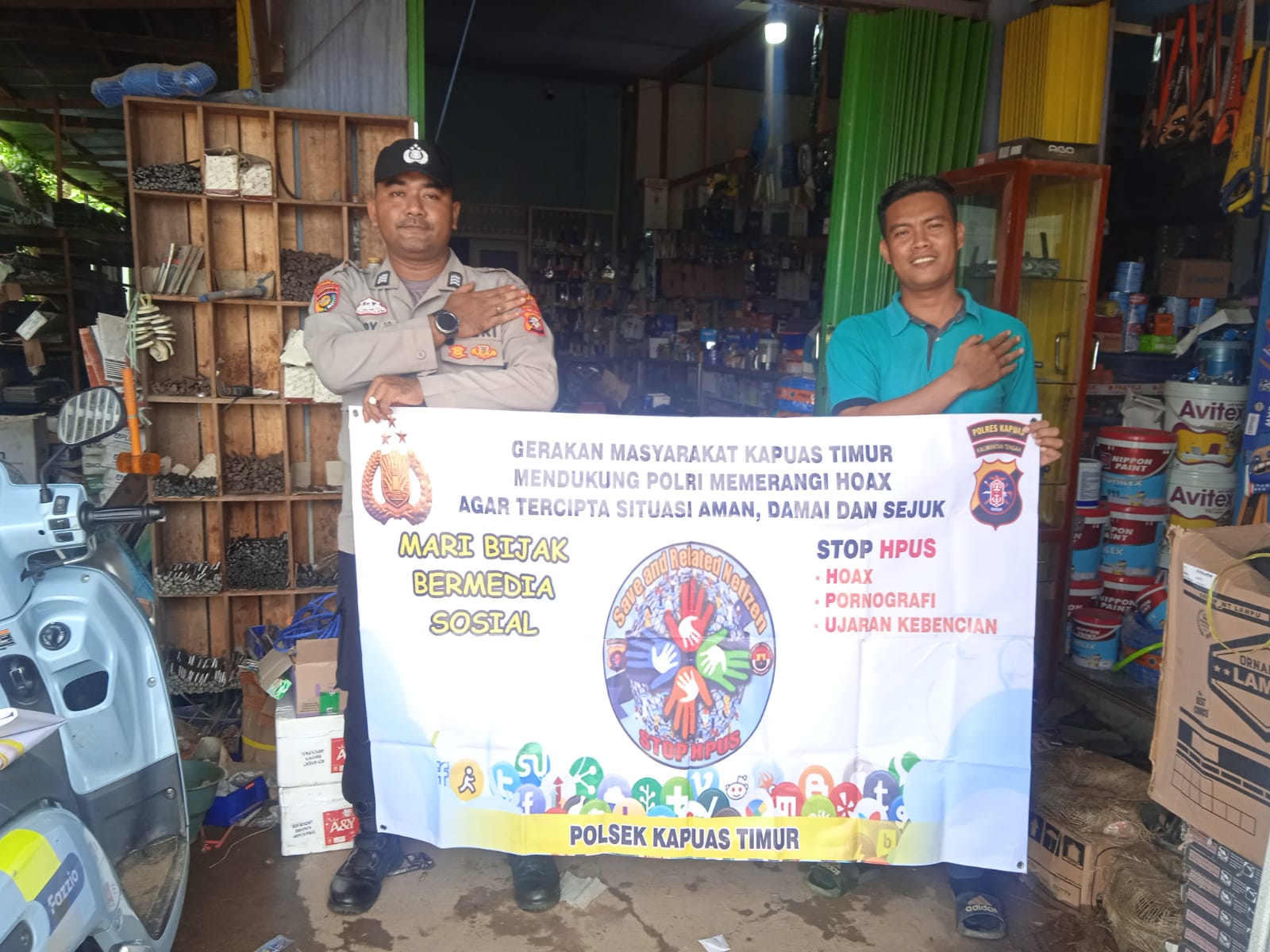 Personel Polsek Kapuas Timur memberikan imbauan agar masyarakat selalu bijak saat bermedia sosial dan stop HPUS, sehingga apabila menemukan informasi yang tidak pas di media sosial masyarakat tidak segan segera melaporkan kepada Kepolisian khususnya informasi yang dapat menjadi potensi gangguan kamtibmas.