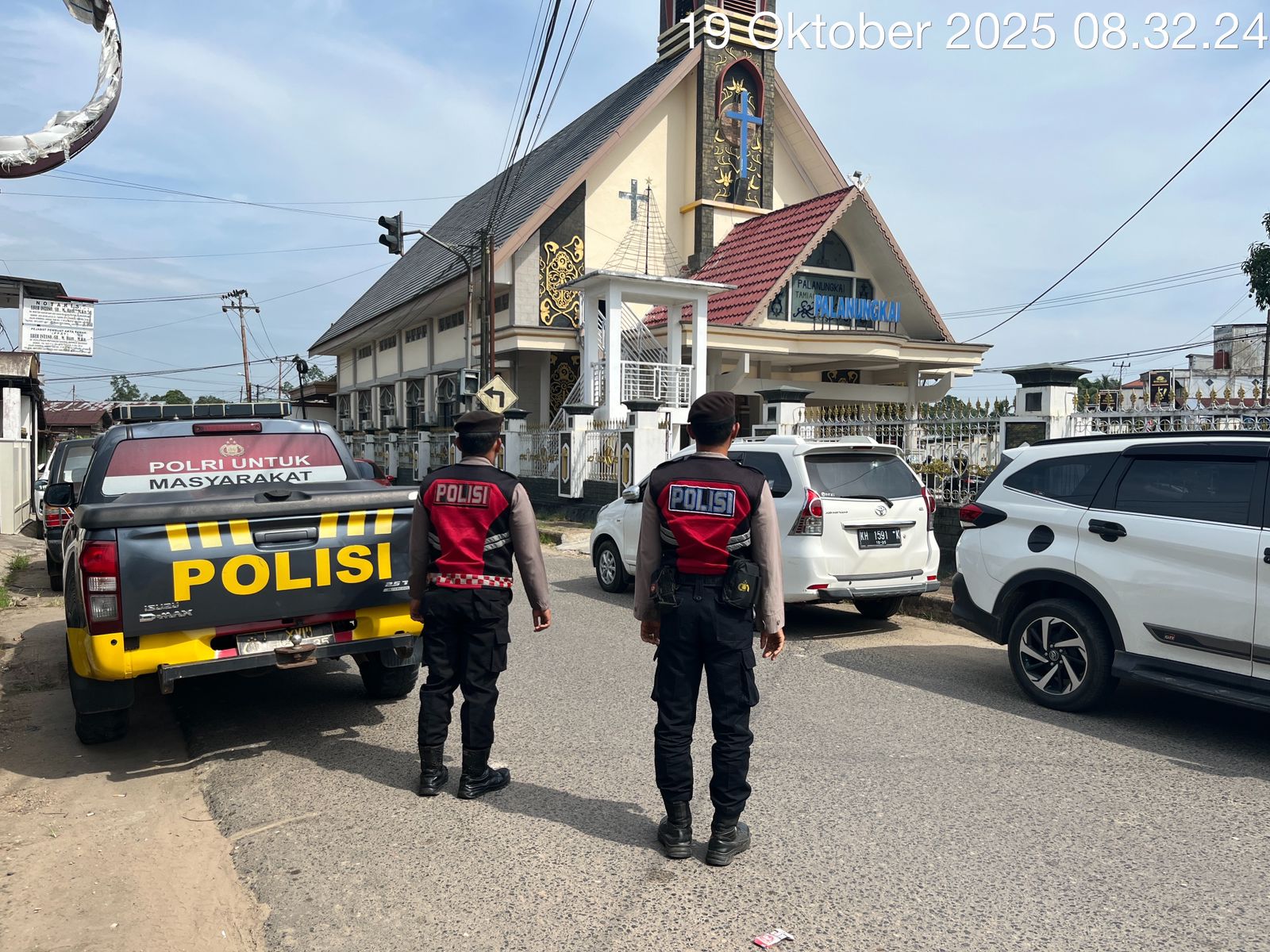 Polres Barito Timur – Satsamapta Polres Barito Timur- Polda Kalteng melaksanakan kegiatan Patroli Kota Presisi di Gereja Palanungkai, Jl. A. Yani, Kel. Tamiang Layang, Kec. Dusun Timur, Kab. Barito Timur, Minggu (19/10/2025). Kegiatan ini dilakukan untuk menjamin keamanan dan ketertiban di lingkungan tempat ibadah.
