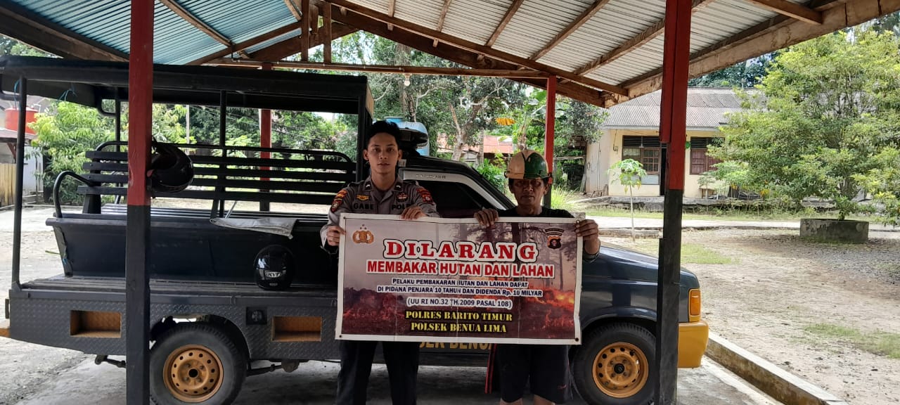 Selain itu, Polsek Benua Lima juga membentangkan spanduk “STOP KEBAKARAN HUTAN DAN LAHAN” bersama-sama dengan masyarakat Kelurahan/Desa di Kec. Benua Lima. Kegiatan ini diharapkan dapat meningkatkan kesadaran masyarakat akan pentingnya menjaga hutan dan lahan dari kebakaran.