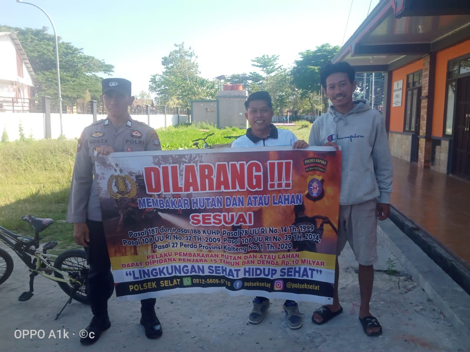 – Polsek Selat – Polsek Selat laksanakan Kegiatan Sosialisasi / Himbauan dengan menggunakan spanduk tentang larangan membuka hutan / lahan dengan cara membakar, adapun maksud dan tujuan sosialisasi tersebut agar warga mengerti dan memahami akan larangan membuka hutan dan lahan Selain mengakibatkan polusi udara juga dapat melanggar undang-undang dan dapat di pidanakan.