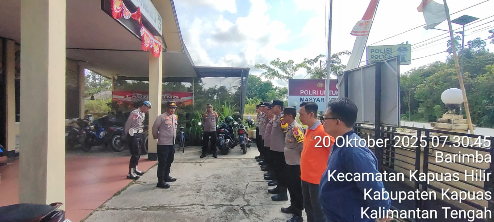 Apel pagi pada hari Senin (20/10/2025) pukul 07.30 wib dilaksanakan di halaman mako Polsek Kapuas Hilir, yang dipimpin oleh Kapolsek Kapuas Hilir IPTU ACHMAD SAEPUDIN.