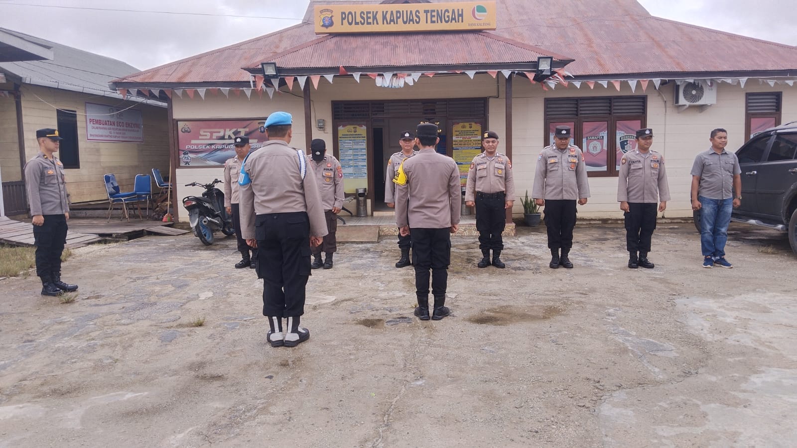 CEK KESIAPAN PERSONEL, KAPOLSEK KAPUAS TENGAH PIMPIN APEL PAGI