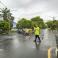 Meski Diguyur Hujan, Personel Satlantas Polresta Palangka Raya Tetap Semangat Laksanakan Pengaturan Lalu Lintas