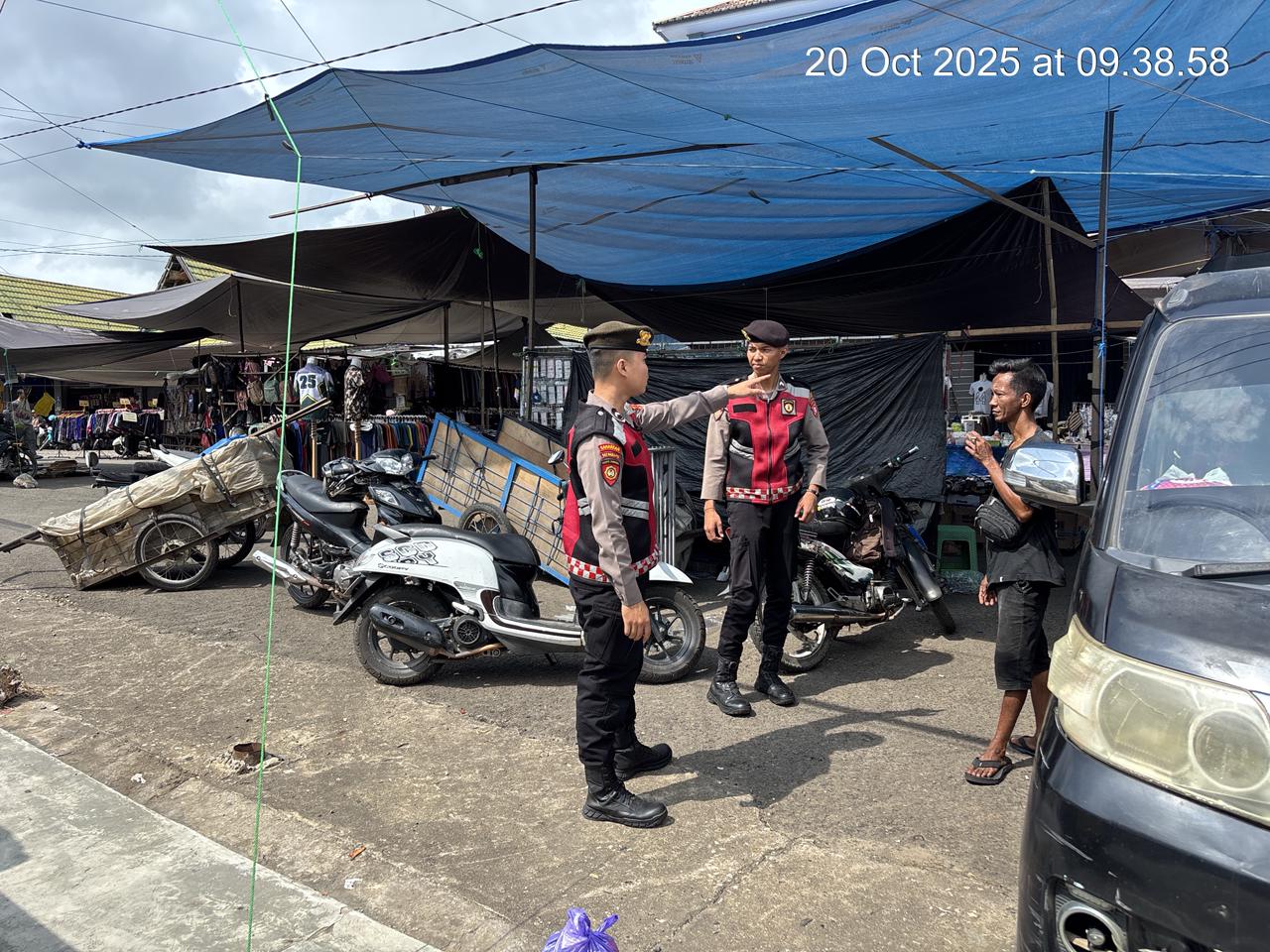 Tamiang Layang, Senin 20 Oktober 2025 — Dalam rangka Patroli Kota Presisi untuk mewujudkan Cipta Kondisi Aman di wilayah hukum Polres Barito Timur, personel Satuan Samapta Polres Barito Timur melaksanakan kegiatan patroli dan berdialog langsung dengan para pedagang di Pasar Temanggoeng Djaja Karti, Jalan A. Yani, Kelurahan Tamiang Layang, Kecamatan Dusun Timur.