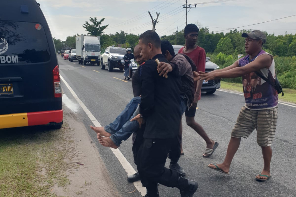 Akibat peristiwa tersebut, pengendara sepeda motor mengalami luka-luka dan segera mendapatkan pertolongan pertama dari anggota Brimob yang kebetulan melintas di lokasi kejadian. Dengan menggunakan kendaraan dinas Ransus Hi-Ace, korban langsung dievakuasi menuju puskesmas terdekat untuk mendapatkan perawatan medis.