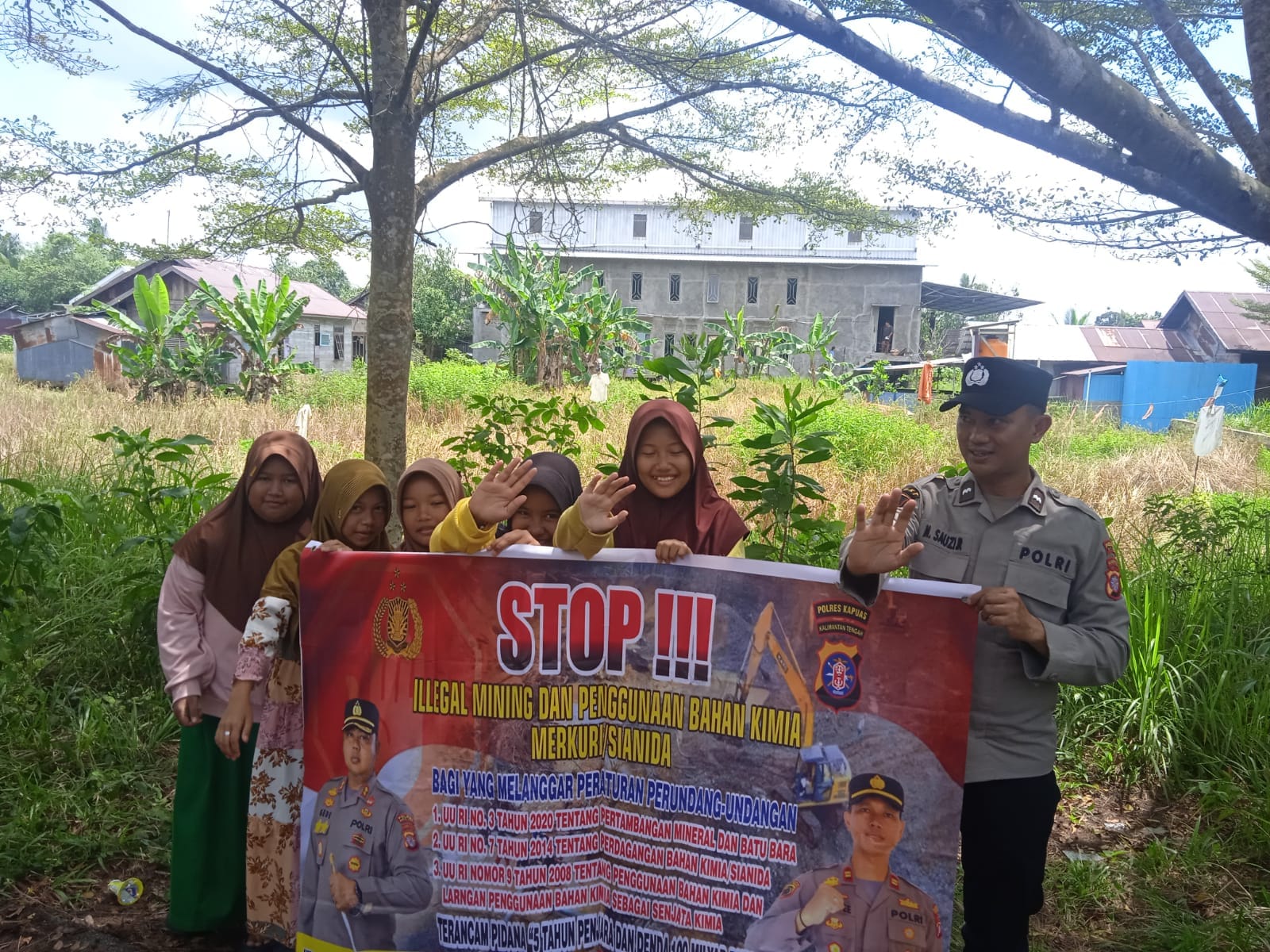 Kapuas Timur-Kegiatan sosialisasi dan imbauan kepada masyarakat dalam rangka pencegahan terjadinya kerusakan alam dengan adanya kegiatan iIlegal mining dan penggunaan bahan kimia mercuri ataupun sianida dengan mengkampanyekan larangan melakukan penambangan illegal berikut pasal, sanksi dan denda bagi pelaku penambangan illegal.