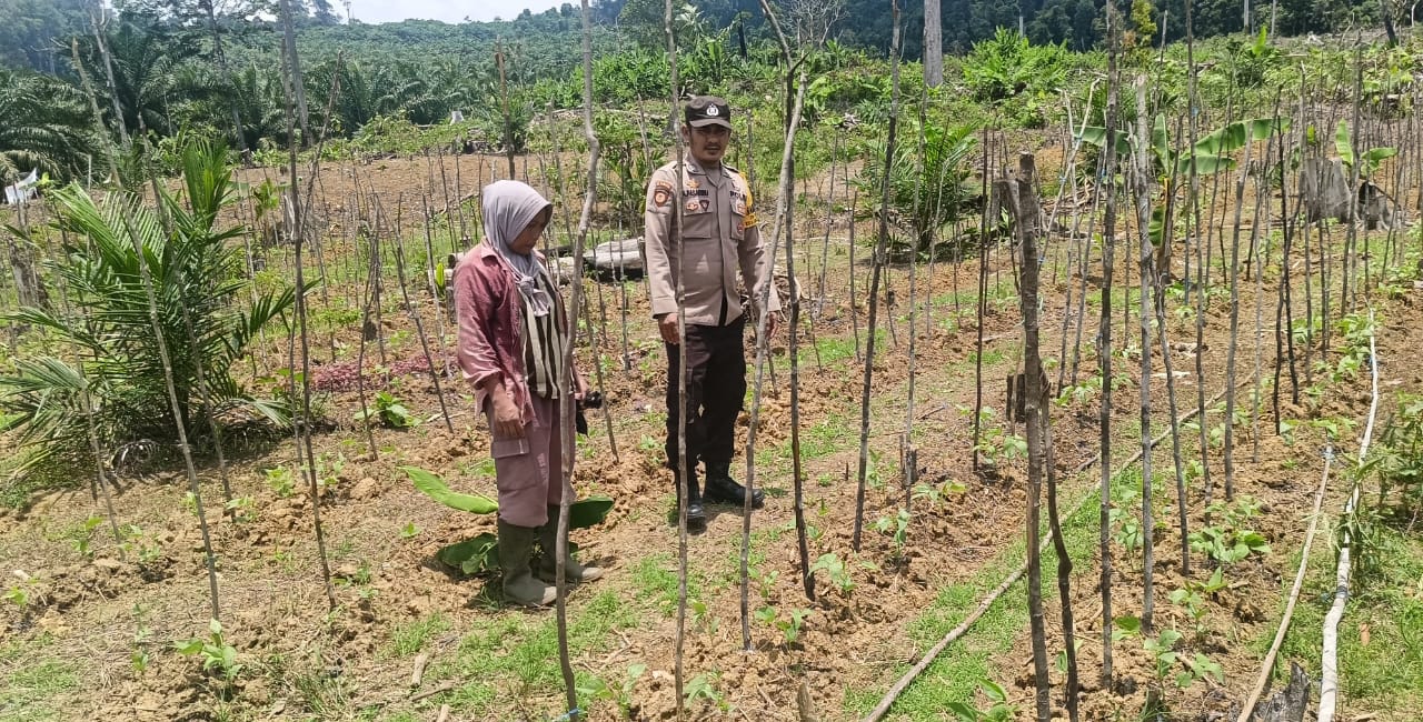Tribratanews.kalteng.polri.go.id-Kapuas Hulu-Kanitbinmas Polsek Kapuas Hulu dan Personel Polsek Kapuas Hulu Polres Kapuas Polda Kalteng sebagai penggerak ketahanan pangan di desa binaanya menyambangi para petani di kebun. Kegiatan ini bertujuan untuk memberikan imbauan dan edukasi kepada petani tentang pentingnya bercocok tanam guna memenuhi kebutuhan konsumsi warga melalui program ketahanan pangan nasional, Selasa (21/10/2025) pukul 10.00 Wib.