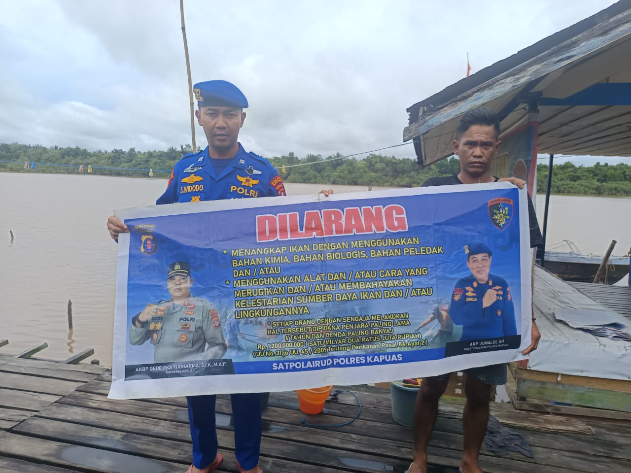 Satpolairud Polres Kapuas Jajaran Polda Kalteng menegaskan kepada warga Pesisir DAS Kapuas yang menangkap ikan dengan cara menyetrum maupun menggunakan bahan kimia berbahaya, ada sanksi dan ancaman pidana menanti, Rabu (22/10/25).