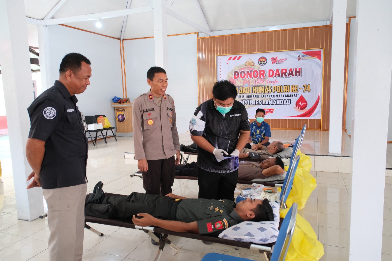 Nanga Bulik — Dalam rangka memperingati Hari Ulang Tahun (HUT) Humas Polri ke-74, Polres Lamandau menggelar kegiatan donor darah dengan tema “Polisi Humanis Harapan Masyarakat”, bertempat di Joglo Mapolres Lamandau, Rabu (22/10/25).