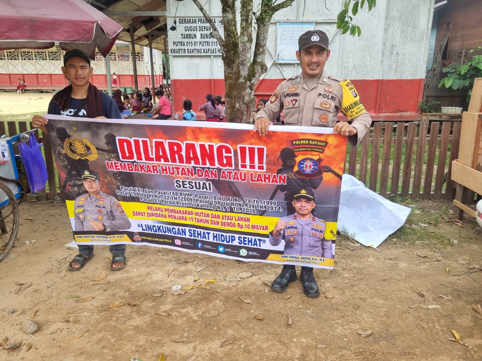 Tribratanews.kalteng.polri.go.id-Kapuas Hulu-Dalam rangka mencegah kebakaran hutan dan lahan (karhutla) di wilayah Kecamatan Kapuas Hulu, oleh personel Polsek Kapuas Hulu Aiptu Sudono dan Brigpol A. Pasaribu, semakin intensif melakukan sosialisasi serta memberikan himbauan kepada masyarakat terkait bahaya dan dampak dari karhutla.