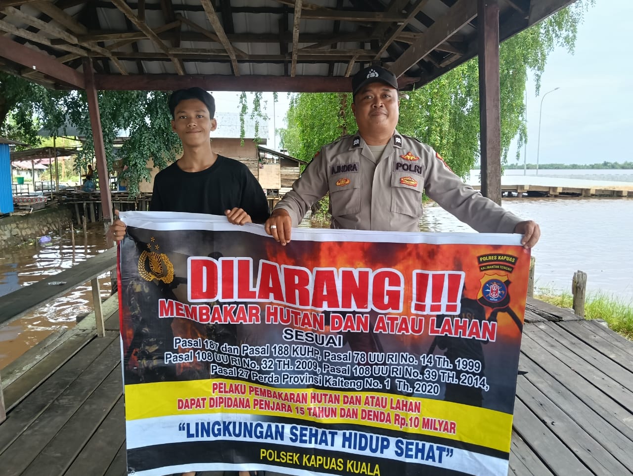 “Mari kita wujudkan Kecamatan Kapuas Kuala bebas dari kebakaran hutan dan lahan, udara bersih dan lingkungan asri,” ujar Kapolsek.