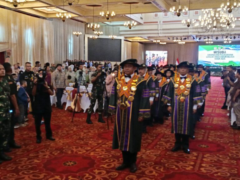 Jakarta – Sebanyak 148 Wisudawan dari Prodi Sarjana dan Pascasarjana Sekolah Tinggi Hukum Militer (STHM) Tahun Ajaran 2025 diwisuda oleh Ketua Senat STHM, Kepala Staf Angkatan Darat (Kasad) Jenderal TNI Maruli Simanjuntak, didampingi Direktur Hukum Angkatan Darat (Ditkumad), Brigjen TNI A. Agung Widi W, S.H., M.H., dan Ketua STHM Brigjen TNI R. Deltanto Sarwi Diatmiko, S.H., M.H., dalam sidang senat terbuka STHM yang digelar di Panti Prajurit Balai Sudirman, Tebet, Jakarta Selatan, Rabu (22/10/2025).