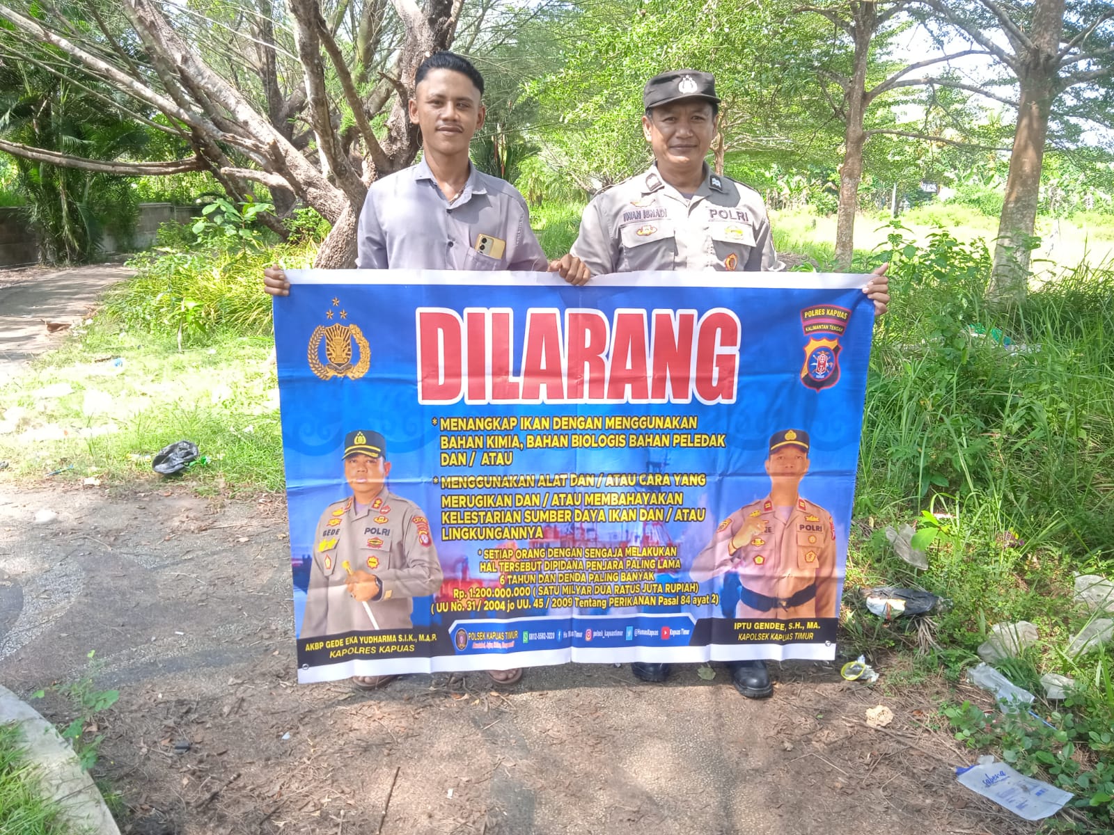 Personel Polsek Kapuas Timur Polres Kapuas Polda Kalteng mengantisipasi maraknya penyetruman ikan di sungai yang ada di Desa Anjir Serapat Timur Kecamatan Kapuas Timur, melaksanakan kegiatan sosialisasi maupun imbauan tentang larangan penangkapan ikan dengan cara menyetrum dan menggunakan bahan berbahaya, Kamis (23/10/2025) pukul 09.30 WIB.