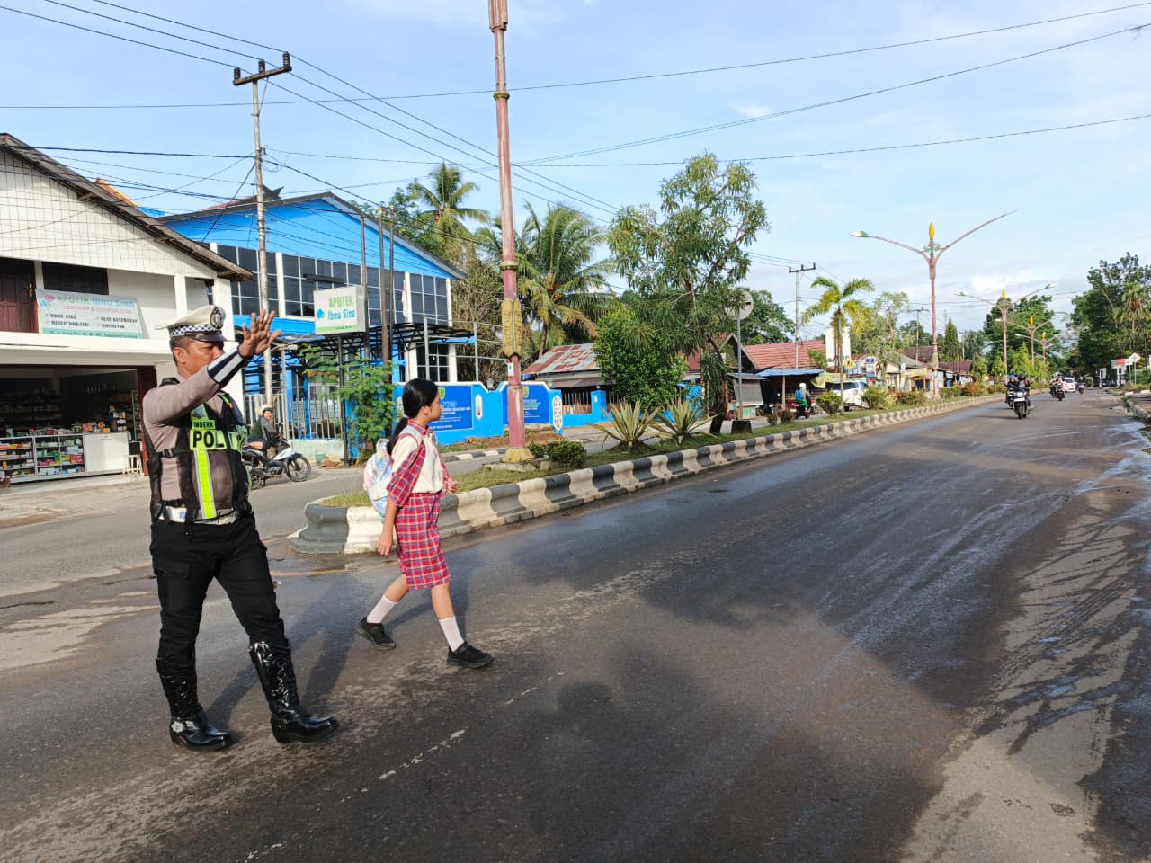 Polri Lakukan Pengawalan Pagi untuk Menyebrangkan Anak SD Agar Aman Menuju Sekolah