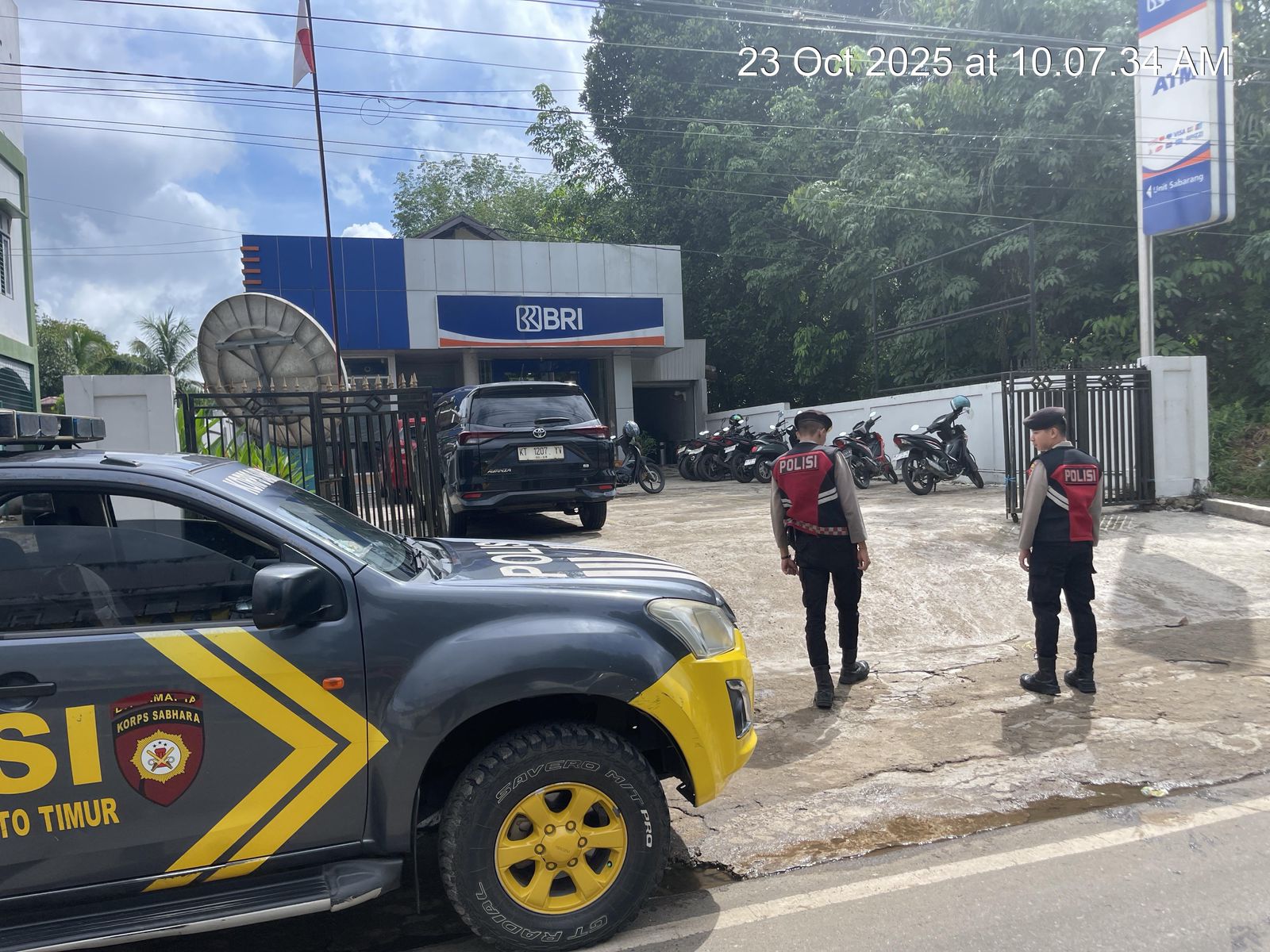 Barito Timur, 23 Oktober 2025 – Personel Satuan Samapta Polres Barito Timur- Polda Kalteng melaksanakan kegiatan sambang di lingkungan Perbankan Bank Rakyat Indonesia (BRI) Unit Sabarang yang berlokasi di Jalan A.Yani Km. 02, Kelurahan Tamiang Layang, Kecamatan Dusun Timur, Kabupaten Barito Timur, Kamis, 23 Oktober 2025.