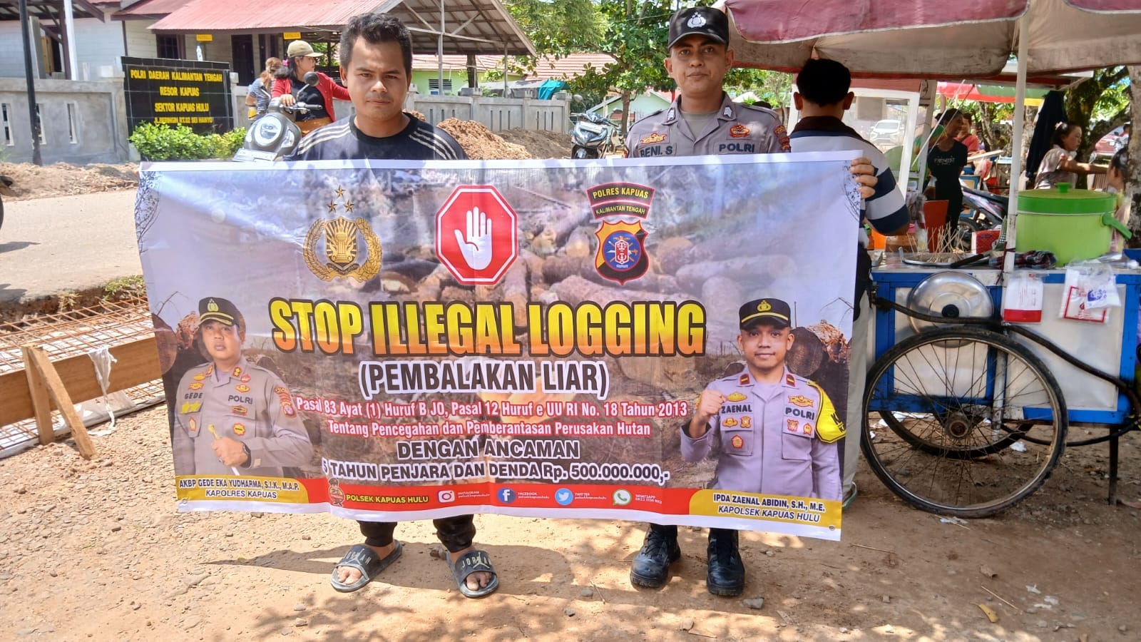Tribratanews.kalteng.polri.go.id-Kapuas Hulu-Polsek Kapuas Hulu, Polres Kapuas, Jajaran Polda Kalteng tak pernah lelah mengingatkan masyarakat yang berada di wilayah hukumnya untuk tidak melakukan aktivitas pembalakan liar tanpa ijin (illegal logging), karena selain membahayakan diri sendiri juga melanggar undang-undang yang berlaku.