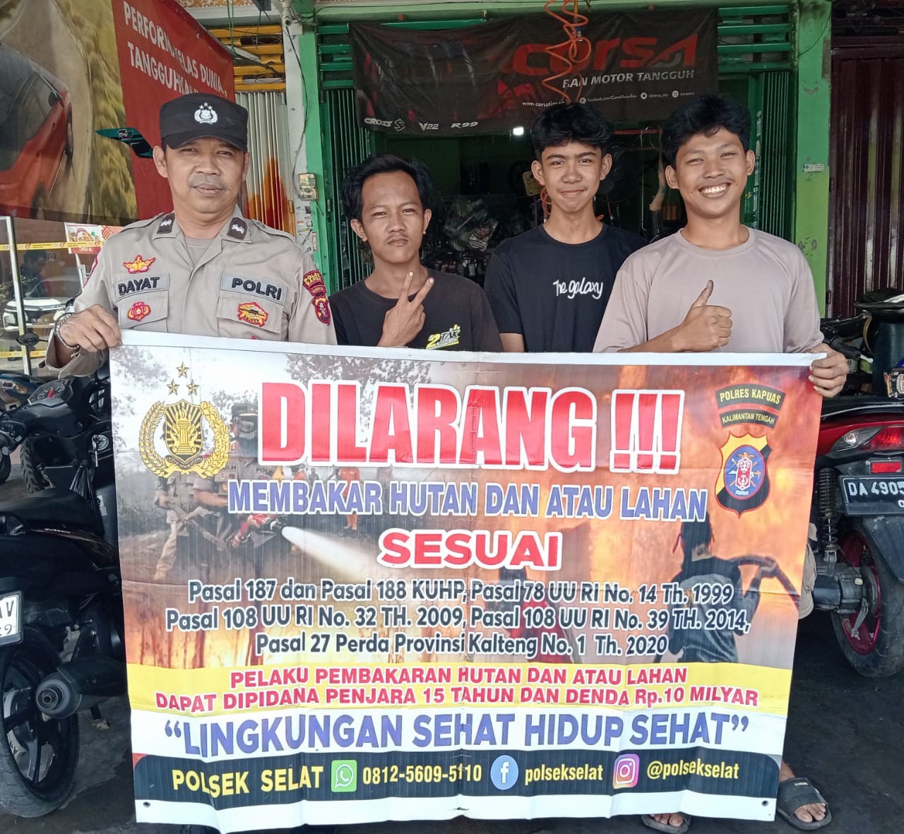 Polsek Selat laksanakan Kegiatan Sosialisasi / Himbauan dengan menggunakan spanduk tentang larangan membuka hutan / lahan dengan cara membakar