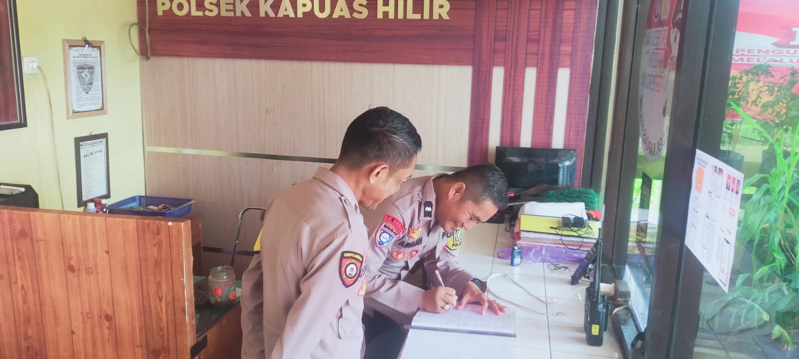 Polsek Kapuas Hilir- Dalam rangka memberikan pelayanan yang optimal kepada masyarakat dan pengamanan Mako Polsek Kapuas Hilir, Anggota Jaga SPKT melaksanakan serah terima tugas Penjagaan Secara Rutin di depan penjagaan Mapolsek Kapuas Hilir, Minggu (26/10/2025) Pukul 08.00 WIB.