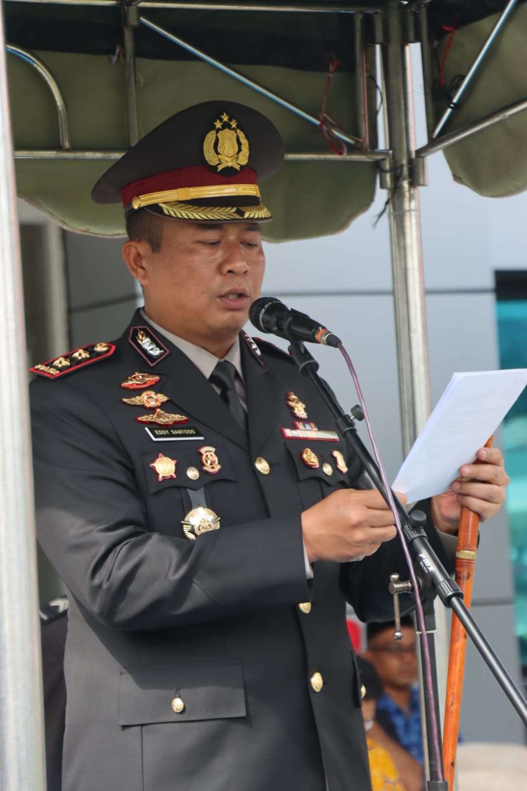 Upacara yang dimulai pukul 08.00 WIB tersebut dipimpin langsung oleh Kapolres Barito Timur, AKBP Eddy Santoso, S.I.K., M.H., yang bertindak sebagai Inspektur Upacara (Irup). Kegiatan diikuti oleh sejumlah pejabat Forkopimda dan unsur pimpinan daerah, antara lain Asisten I dan II Setda Bartim, Pabung 1012/Buntok, perwakilan dari Kejaksaan Negeri Bartim, Pengadilan Negeri Bartim, serta Kepala Kemenag, Kepala Perangkat Daerah, Camat se-Barito Timur, Damang se-Barito Timur, Kepala Sekolah se-Kabupaten Barito Timur, dan para undangan lainnya.