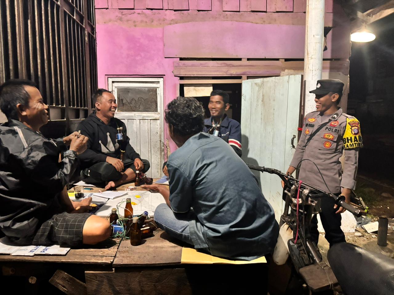Kegiatan yang dimulai sekitar pukul 22.00 WIB tersebut menyasar anggota Satkamling yang sedang melaksanakan ronda malam. Adapun petugas jaga pada malam itu terdiri dari Supri, Mardi, Yunus, dan Suyadi. Kehadiran Bhabinkamtibmas disambut positif oleh warga yang sekaligus menyampaikan beberapa informasi terkait situasi keamanan di lingkungan mereka.