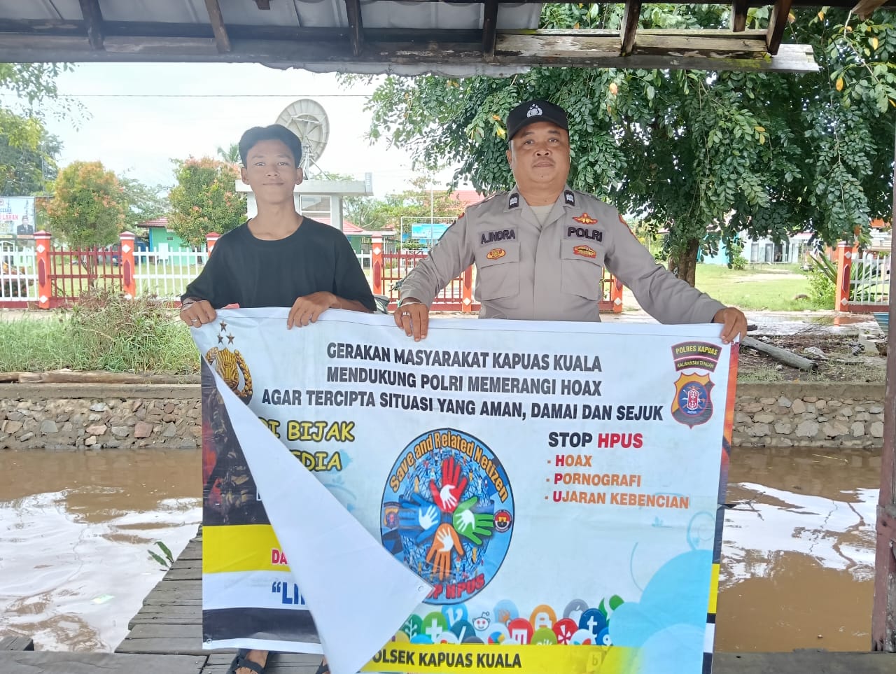 Dalam upaya memberikan pemahaman kepada masyarakat tentang dampak negatif dari informasi palsu dan ujaran yang menyesatkan, Personil Polsek Kapuas Kuala Ka Spkt I Aiptu Agus Indramayu melaksanakan kegiatan sosialisasi dengan menggunakan spanduk terkait bahaya penyebaran hoax dan ujaran kebencian kepada masyarakat di Desa Tamban Lupak, Kecamatan Kapuas Kuala, Kabupaten Kapuas, Jumat Skj 11.00 Wib.(14\11\2025).