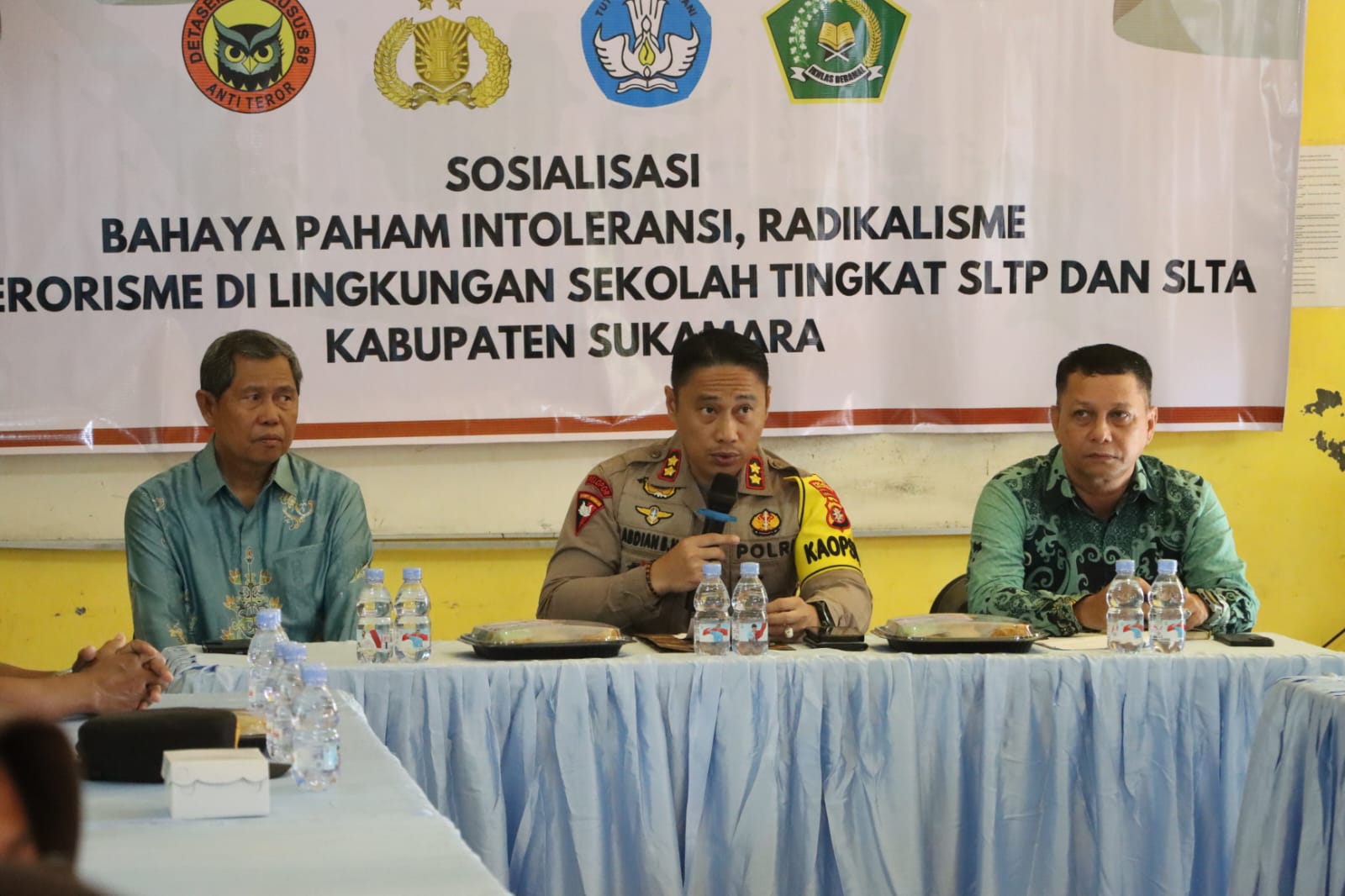 Dalam sambutannya, Kapolres Sukamara menegaskan bahwa radikalisme, intoleransi, dan terorisme merupakan ancaman nyata bagi bangsa. “Perkembangan teknologi dan informasi membuat penyebaran paham tersebut semakin mudah. Melalui sosialisasi ini, kita berharap seluruh peserta memahami ciri, pola, dan bahaya paham radikal serta memperkuat nilai kebhinekaan, moderasi beragama, dan sikap toleransi dalam kehidupan sehari-hari. Kita ingin menciptakan lingkungan yang aman, harmonis, serta bebas dari upaya adu domba yang merusak persatuan,” ujarnya.