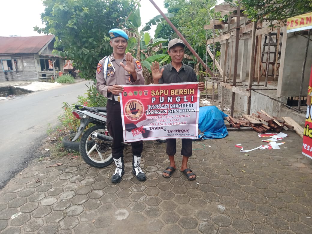 Polres Barsel – Mengantisipasi terjadinya Pungutan Liar (Pungli), Polsek Karau Kuala, jajaran Polres Barsel, Polda Kalteng, melaksanakan sosialisasi Saber Pungli dengan sasaran masyarakat Kelurahan Bangkuang, Kecamatan Karau Kuala, Buntok, Prov. Kalteng, Sabtu (22/11/2025) pagi