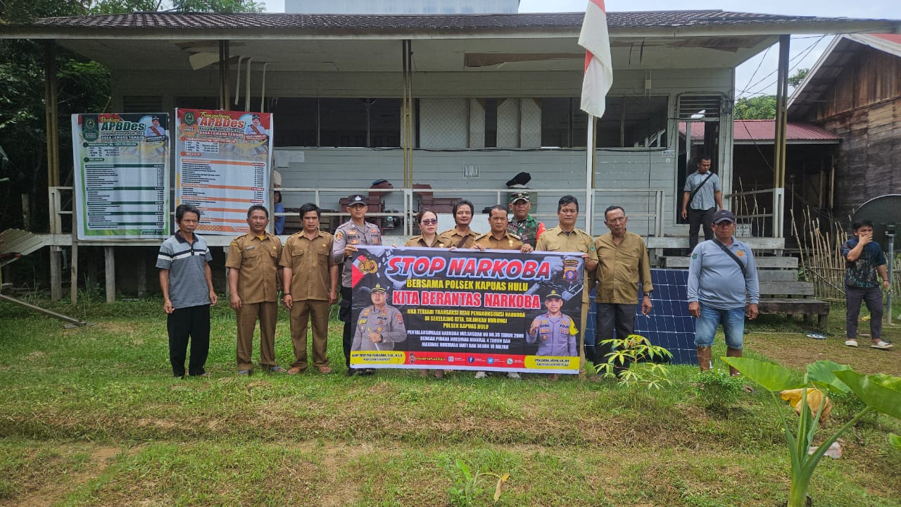 Tribratanews.kalteng.polri.go.id-Mandau Telawang-Dalam upaya meningkatkan pencegahan dan penanggulangan penyalahgunaan narkoba, personel Polsek Kapuas Hulu Polres Kapuas jajaran Polda Kalteng Aipda Imanuel P. Nadeak dan Brigpol Beni. S, S.H., rutin melaksanakan sosialisasi telah melaksanakan imbauan melalui media spanduk bertuliskan “Stop Narkoba” di beberapa lokasi yang dianggap rawan tindak pidana narkoba. Bertempat di Desa Lawang Tamang Kecamatan Mandau Telawang Kabupaten Kapuas Provinsi Kalimantan Tengah, Selasa (02/12/2025) pukul 12.00 WIB