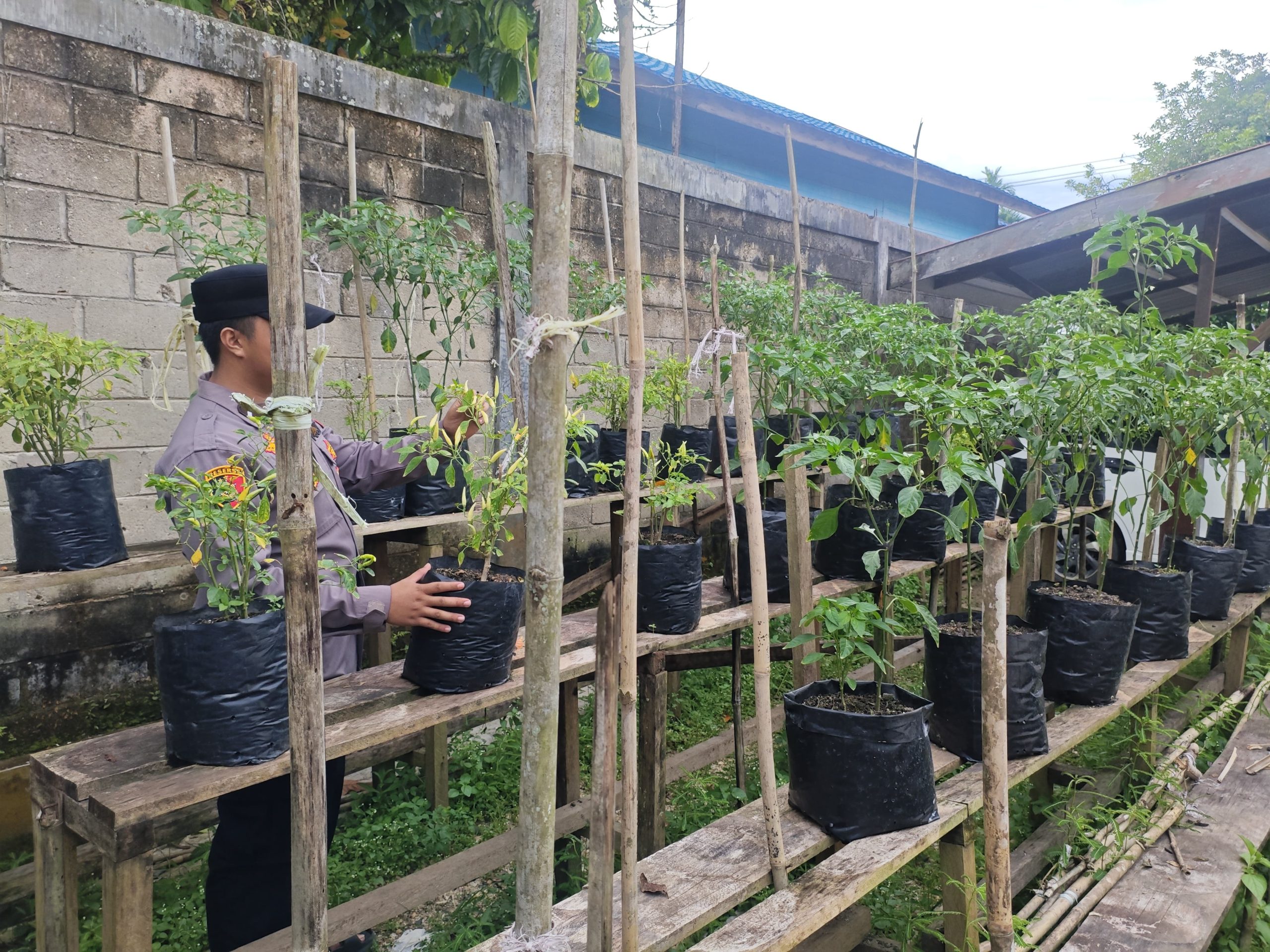 Tribratanews.kalteng.polri.go.id-Kapuas Hulu-Kegiatan ini bertujuan untuk memastikan keberlanjutan produksi pangan serta mengoptimalkan potensi sumber daya alam yang ada di wilayah Kecamatan Kapuas Hulu, Dalam rangka mendukung program ketahanan pangan guna mendukung program 100 hari pemerintahan presiden Prabowo-Gibran, Pengecekan yang dilakukan oleh Kanitbinmas Polsek Kapuas Hulu bersama personel Polsek Kapuas Hulu pada hari Selasa (02/12/2025) pukul 09.00 Wib, melaksanakan peninjauan lokasi pemanfaatan lahan pekarangan berupa tanaman cabe dalam polybag dilahan milik Bank Kalteng berlokasi di Desa Sei Hanyo RT. 002 Kec. Kapuas Hulu Kab. Kapuas.