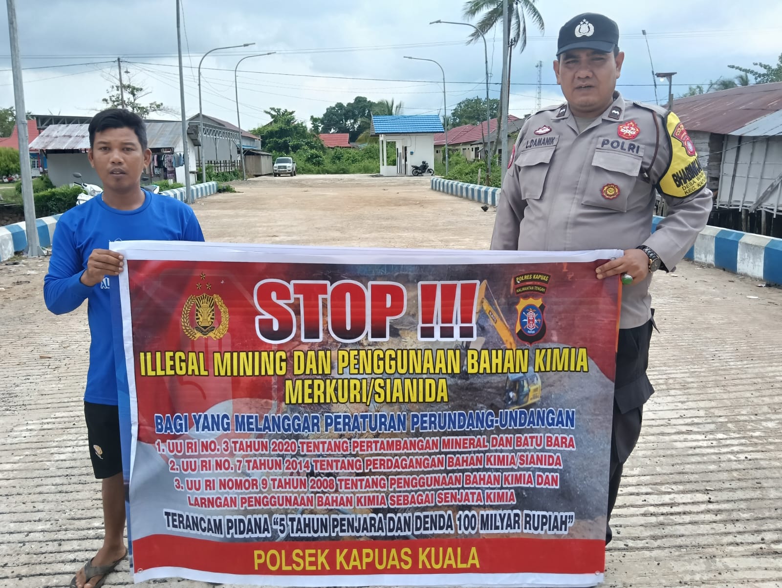Polsek Kapuas Kuala, Polres Kapuas, Jajaran Polda Kalimantan Tengah. Mencegah terjadinya Penambangan Liar serta penyalahgunaan dan peredaran bahan-bahan kimia dikalangan masyarakat, KA SPKT II Aiptu Agus Indramayu gencar melaksanakan sosialisasi larangan illegal Mining.
