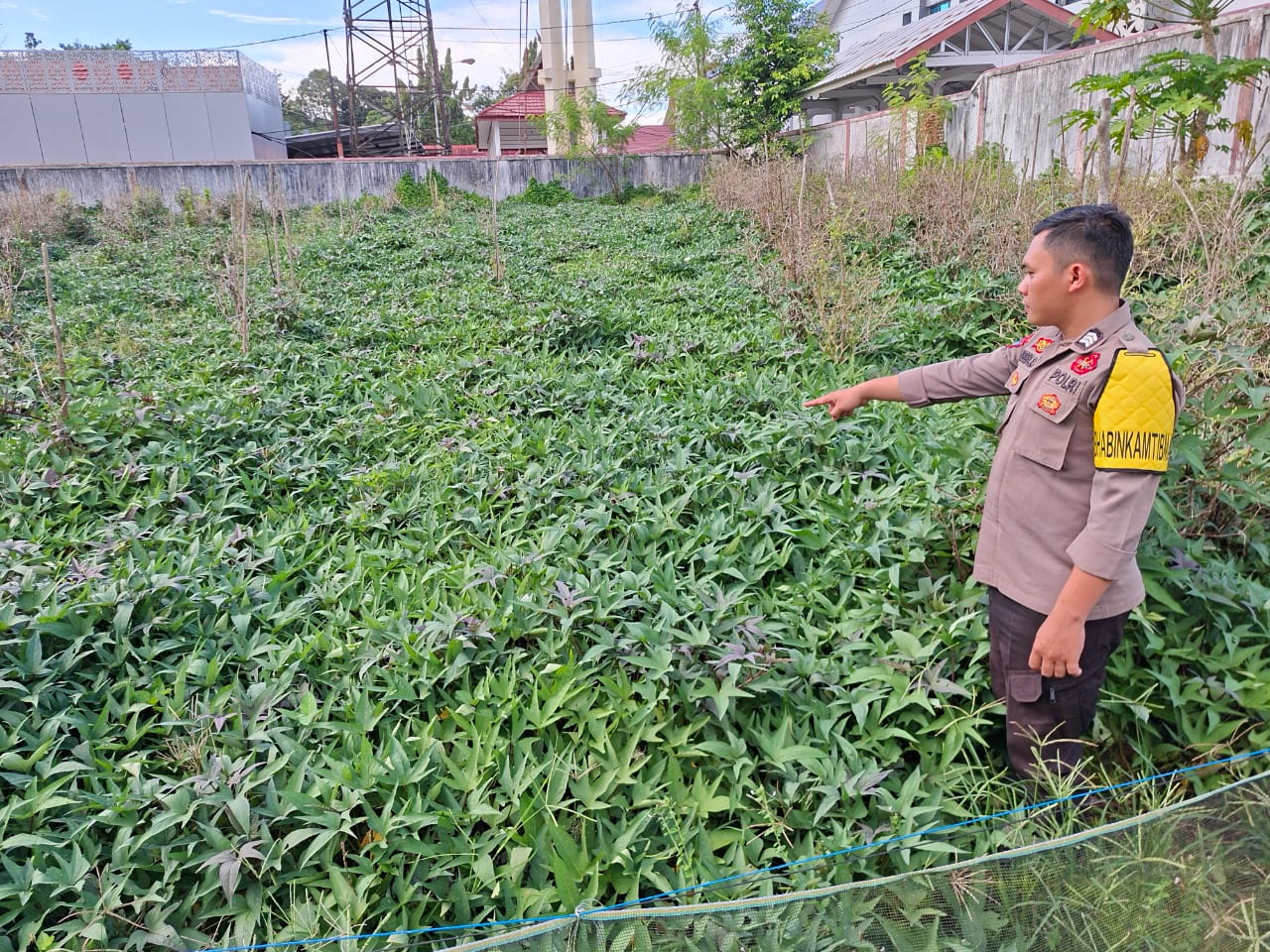 Lahan tersebut ditanami Ubi Ungu dengan ukuran 30 x 30 meter, yang menjadi bagian dari upaya penguatan ketahanan pangan berbasis desa dan pemberdayaan masyarakat sekitar. Dalam kegiatan sambang, Bhabinkamtibmas turut berdialog dengan masyarakat serta menyampaikan motivasi kepada petani agar terus meningkatkan produktivitas pertanian secara mandiri.