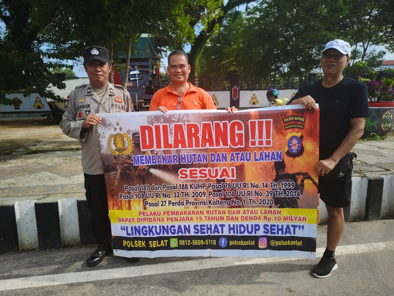 – Polsek Selat – Polsek Selat laksanakan Kegiatan Sosialisasi / Himbauan dengan menggunakan spanduk tentang larangan membuka hutan / lahan dengan cara membakar, adapun maksud dan tujuan sosialisasi tersebut agar warga mengerti dan memahami akan larangan membuka hutan dan lahan Selain mengakibatkan polusi udara juga dapat melanggar undang-undang dan dapat di pidanakan.