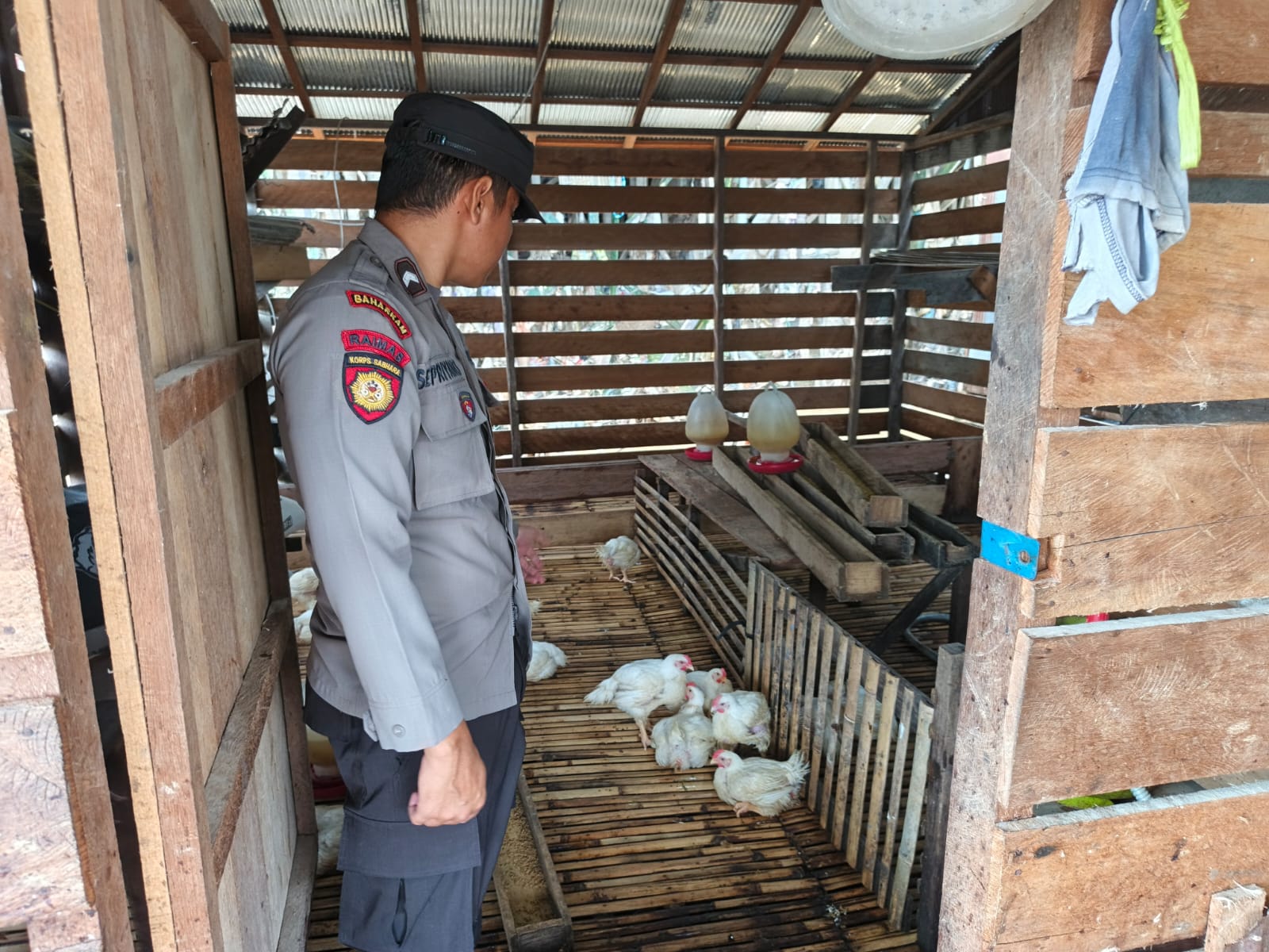 “Polri mendukung penuh arahan pemerintah dengan melibatkan diri langsung dalam program ketahanan pangan yang diimplementasikan di berbagai wilayah. Kita melakukan pengecekan lahan pekarangan pengembangbiakkan hewan ternak milik warga Desa Jangkang di Kecamatan Pasak Talawang yang sudah memanfaatkannya.