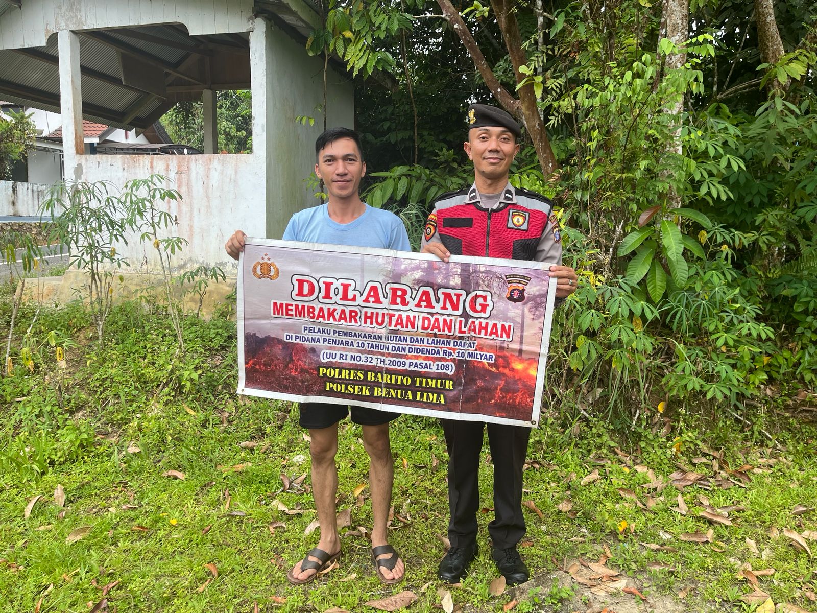 Bentang Sepanduk Larangan Membakar Hutan Dan Lahan Personil Polsek Kapuas Murung Melalui Giat Sosialisasi Karhutla