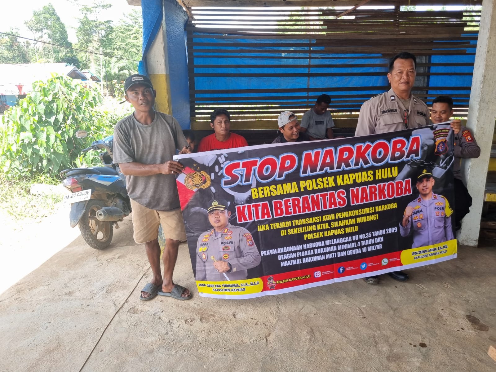 “Dengan media spanduk “Stop Narkoba Bersama Polsek Kapuas Hulu Kita Berantas Narkoba”, penyuluhan dan imbauan bahaya narkoba ini kami gelar dan menyasar masyarakat khususnya kalangan pemuda dan remaja yang merupakan generasi penerus bangsa”, kata Kapolsek Kapuas Hulu Ipda Zaenal Abidin, S.H., M.E.