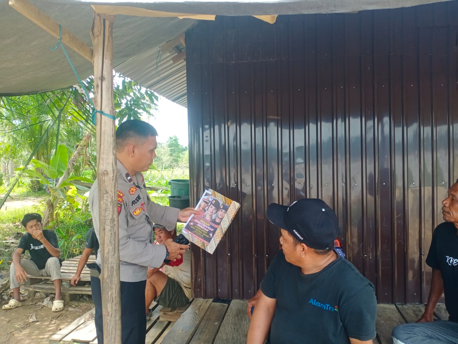 Murung Raya – Bhabinkamtibmas Desa Tumbang Saan Pospol Sei Babuat Polsek Permata Intan, Polres Murung Raya (Mura) Polda Kalteng dan Babinsa melaksanakan Sosialisasi dan Himbauan kepada warga untuk cegah karhutla (Kebakaran hutan dan Lahan) di desa Tumbang Saan, Senin (16/2/2026) pukul 12.00 WIB.