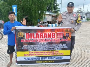 “Mari kita wujudkan Kecamatan Kapuas Kuala bebas dari kebakaran hutan dan lahan, udara bersih dan lingkungan asri,” ujar Kapolsek.