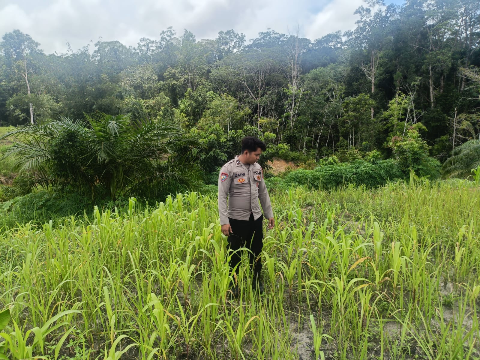 Dukung Swasembada Pangan, Bhabinkamtibmas Polsek Laung Tuhup Monitoring Kebun Jagung Hibrida