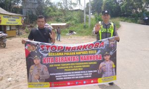 Tribratanews.kalteng.polri.go.id-Kapuas Hulu-Dalam upaya meningkatkan pencegahan dan penanggulangan penyalahgunaan narkoba, personel Polsek Kapuas Hulu Aipda Simpang L. S. Purba dan Aiptu Setiawan C. M. S.H., telah melaksanakan imbauan melalui media spanduk bertuliskan “Stop Narkoba” di beberapa lokasi yang dianggap rawan tindak pidana narkoba. Bertempat di Desa Sei Hanyo Kecamatan Kapuas Hulu Kapuas Hulu Kabupaten Kapuas Provinsi Kalimantan Tengah, Senin (06/04/2026) pukul 16.00 WIB