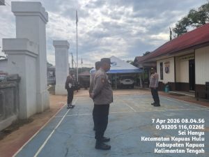 Apel pagi kali ini dipimpin oleh Kapolsek Kapuas Hulu Ipda Zaenal Abidin, S.H., M.E., bersama personel Polsek Kapuas Hulu dilaksanakan dalam rangka antisipasi perkembangan sitkamtibmas di wilayah hukum Polsek Kapuas Hulu jajaran Polres Kapuas Polda Kalteng di halaman mako Polsek Kapuas Hulu, Selasa (07/04/2026) pukul 08.00 Wib