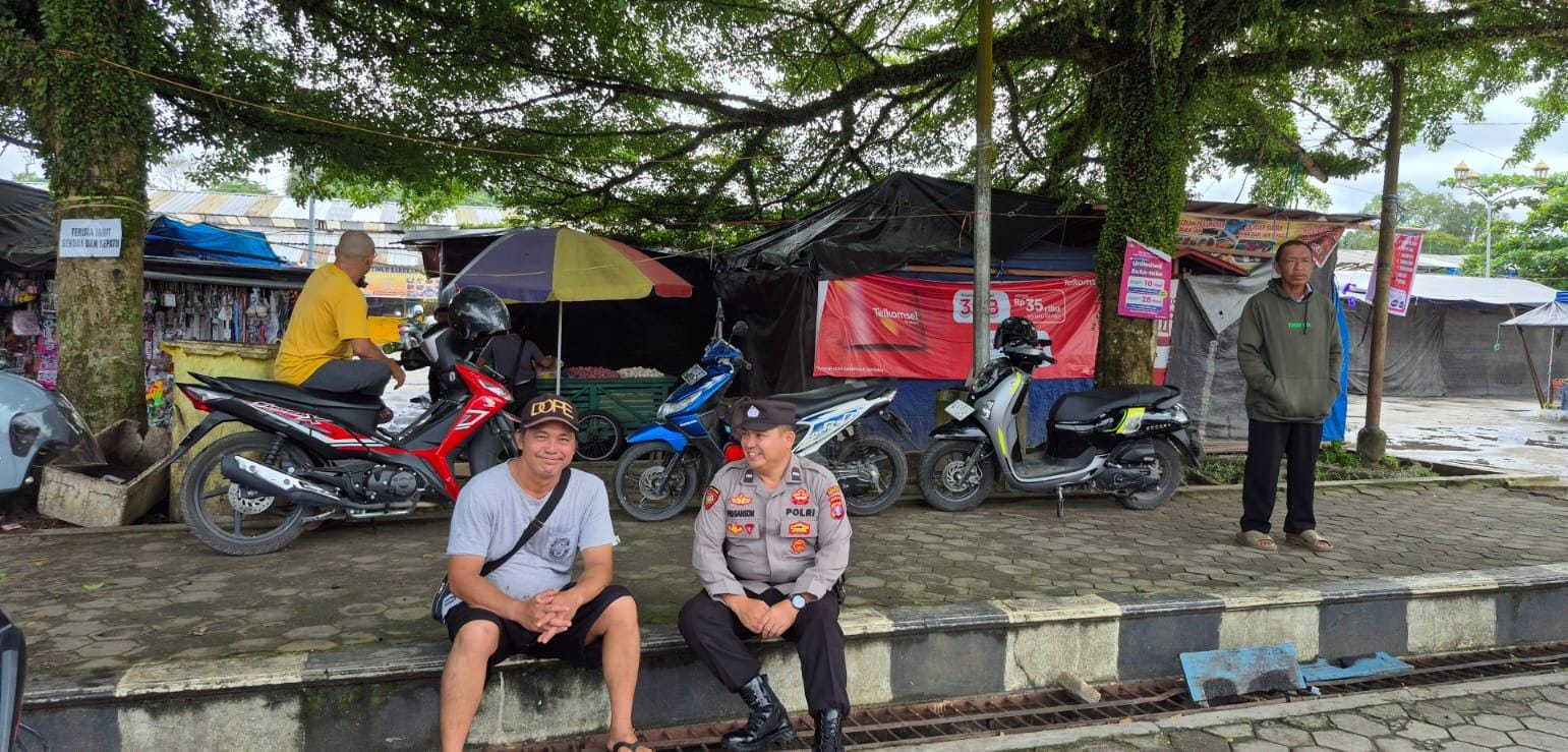 Piket polsek lakuakan rutin Patroli ke pasar harian Pujon desa Pujon.