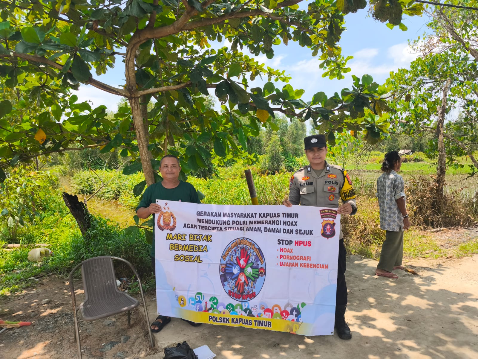 Polres Kapuas – Polsek Kapuas Timur – Sosialisasi berkaitan dengan ANTI HOAX, Personel Polsek Kapuas Timur Jajaran Polres Kapuas, Polda Kalteng secara humanis disampaikan oleh Personel Polsek Kapuas Timur memberikan sosialisasi kepada warga di Kec. Kapuas Timur Kab.Kapuas .Minggu (12/04/2026) Pagi mulai Pukul 09:45 WIB