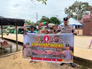 Tribratanews.kalteng.polri.go.id-Kapuas Hulu-Personel Polsek Kapuas Hulu, Polres Kapuas, Polda Kalteng Aipda Imanuel P. Nadeak dan Brigpol A. Pasaribu, melakukan sosialisasi terkait illegal logging sekaligus bahaya perambahan hutan di wilayah Desa Sei Hanyo Kecamatan Kapuas Hulu Kab. Kapuas Prov. Kalteng, Senin (06/04/2026) 11.00 WIB.