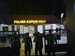 POLSEK KAPUAS HULU SIAGA PENJAGAAN MALAM ANTISIPASI ANCAMAN KEAMANAN PERSONIL SERTA MAKO